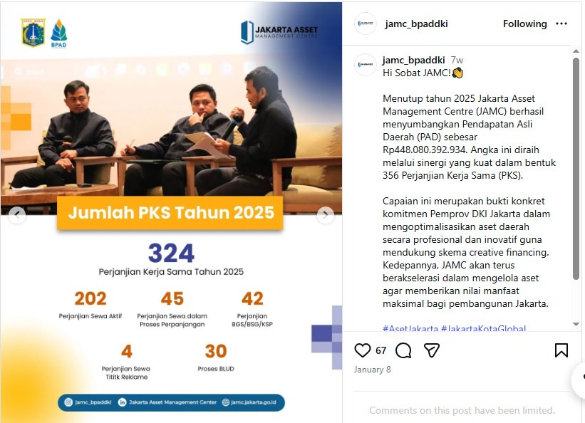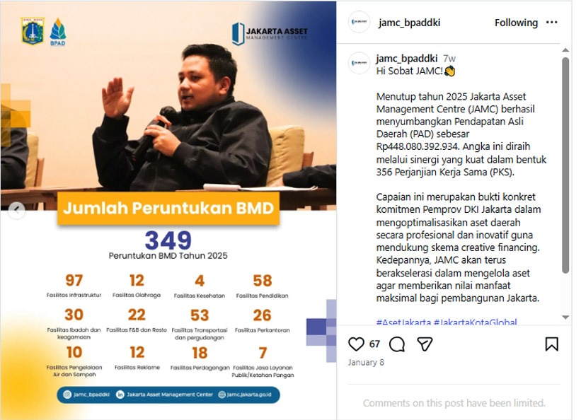- Peningkatan kontribusi aset terhadap PAD DKI Jakarta.
